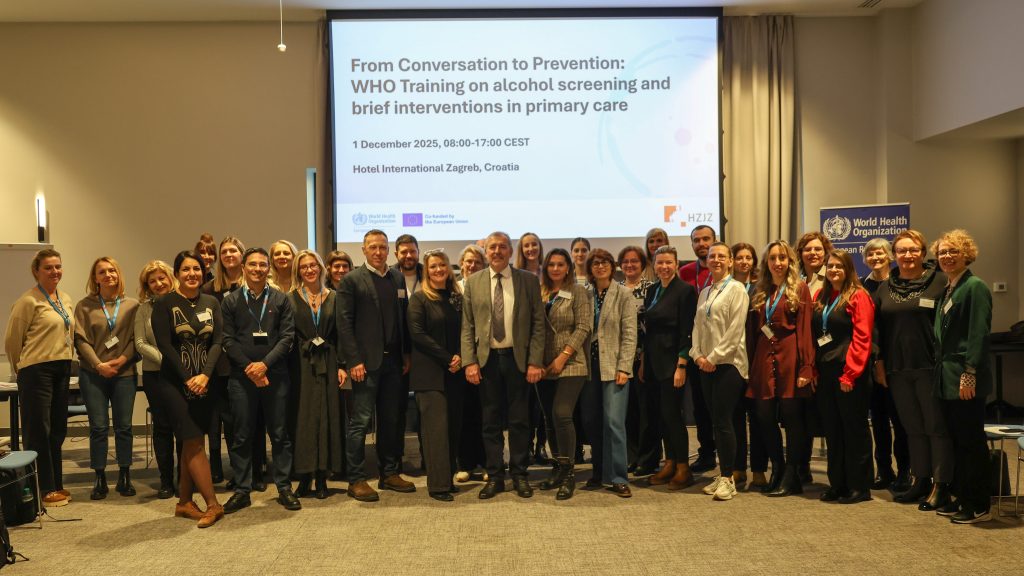 Realizada no âmbito do projeto WHO–European Union Evidence into Action Alcohol, a formação reuniu profissionais de cuidados de saúde primários e representantes de organizações de pessoas com deficiência da Croácia, um país onde o consumo do álcool continua elevado e acima da média europeia.  De caráter prático, teve como objetivo reforçar o desenvolvimento de competências nesta área, na comunicação com o utente e na integração da SBI na prática clínica diária nos cuidados de saúde primários.