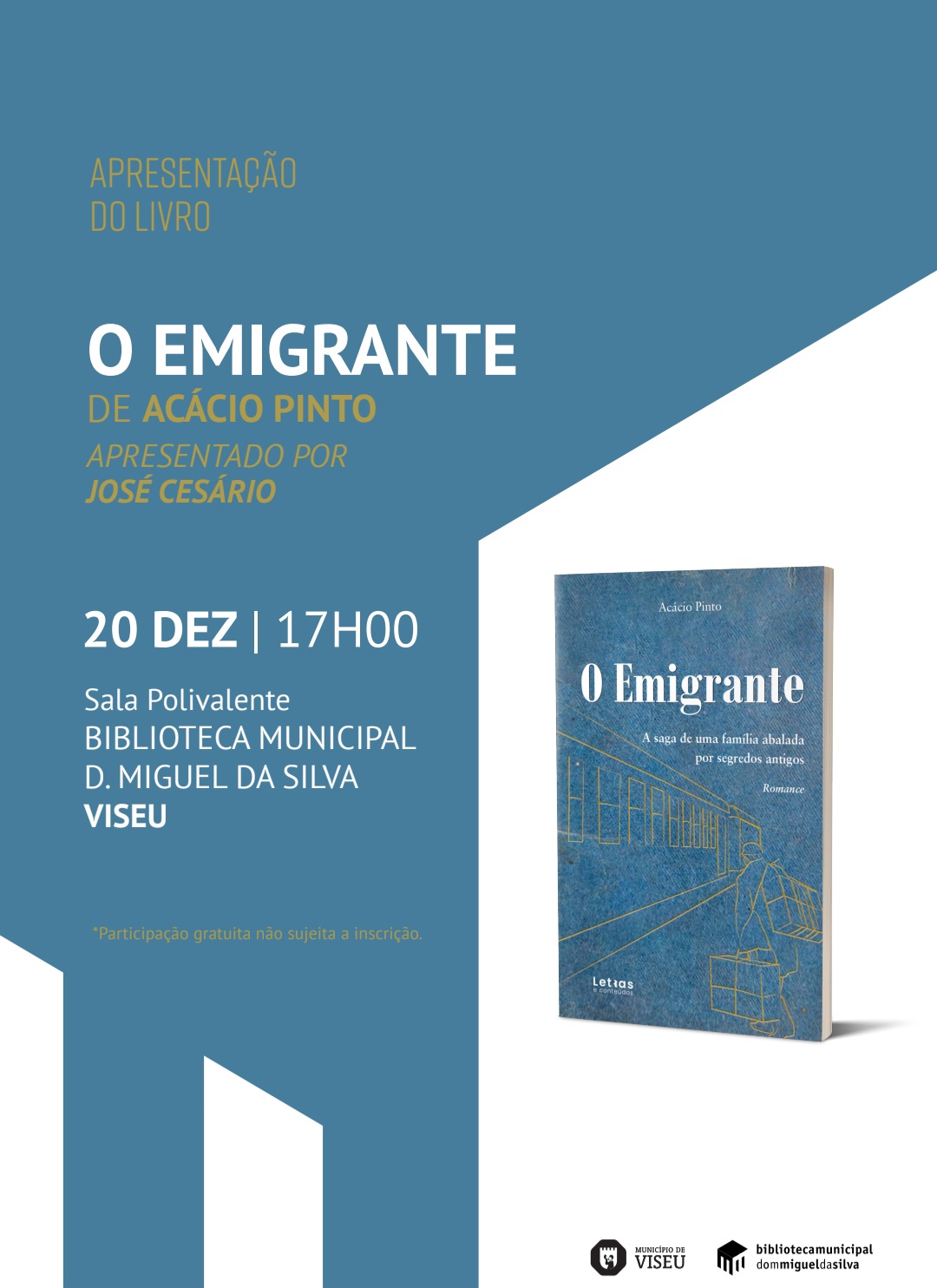 A apresentação da obra será efetuada por José Cesário, Deputado à Assembleia da República e ex-Secretário de Estado das Comunidades Portuguesas e contará com a presença do Presidente da Câmara Municipal de Viseu, João Azevedo.