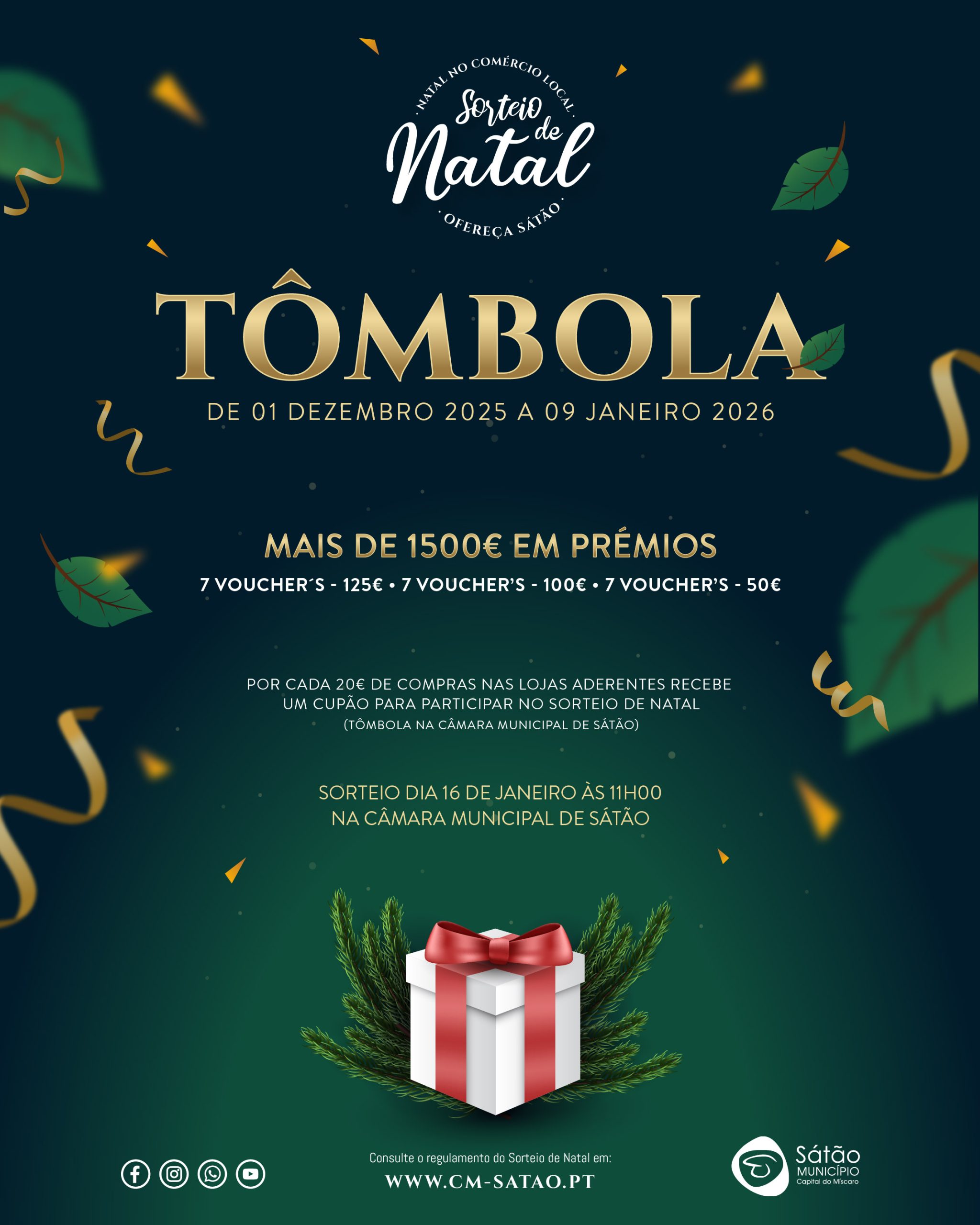 Para incentivar e revitalizar o comércio local na época natalícia, o Município de Sátão convida os consumidores a participarem na 5ª edição do concurso “Natal no Comércio Local – Ofereça Sátão”. Ao fazerem compras nas lojas do concelho, entre o dia 01 de dezembro de 2025 e 09 de janeiro de 2026, por cada 20 euros de compras nos estabelecimentos aderentes, os consumidores terão direito a um cupão, que os habilita a prémios, com um valor total de mais de 1.500,00 euros.